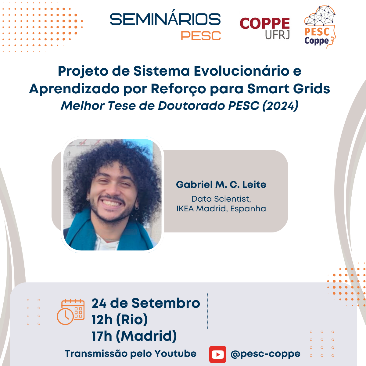 Este é um seminário comemorativo pela escolha da Melhor Tese de Doutorado do PESC no ano de 2024. Na ocasião faremos a entrega do prêmio. Como o palestrante atualmente reside no exterior, faremos o Seminário PESC excepcionalmente em modo online. Além disso, o horário será ligeiramente diferente do usual, devido a diferença de fuso horário e compromissos do palestrante.