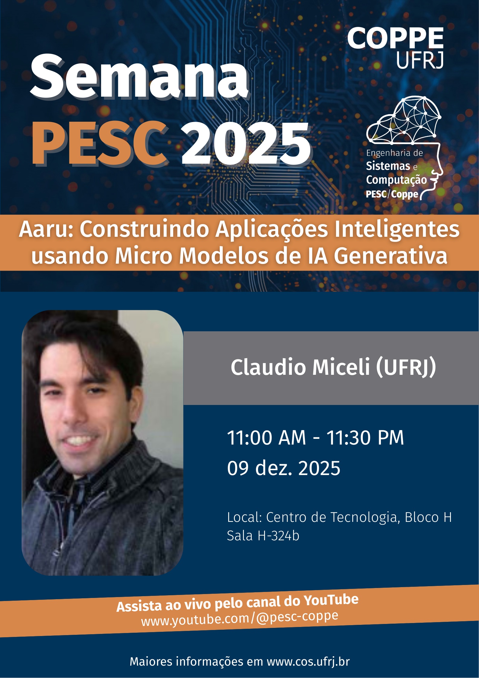 11:00 - (JCNE 2025) Claudio Miceli de Farias (Programa de Engenharia de Sistemas e Computação) – Aaru: Construindo Aplicações Inteligentes usando Micro Modelos de IA Generativa