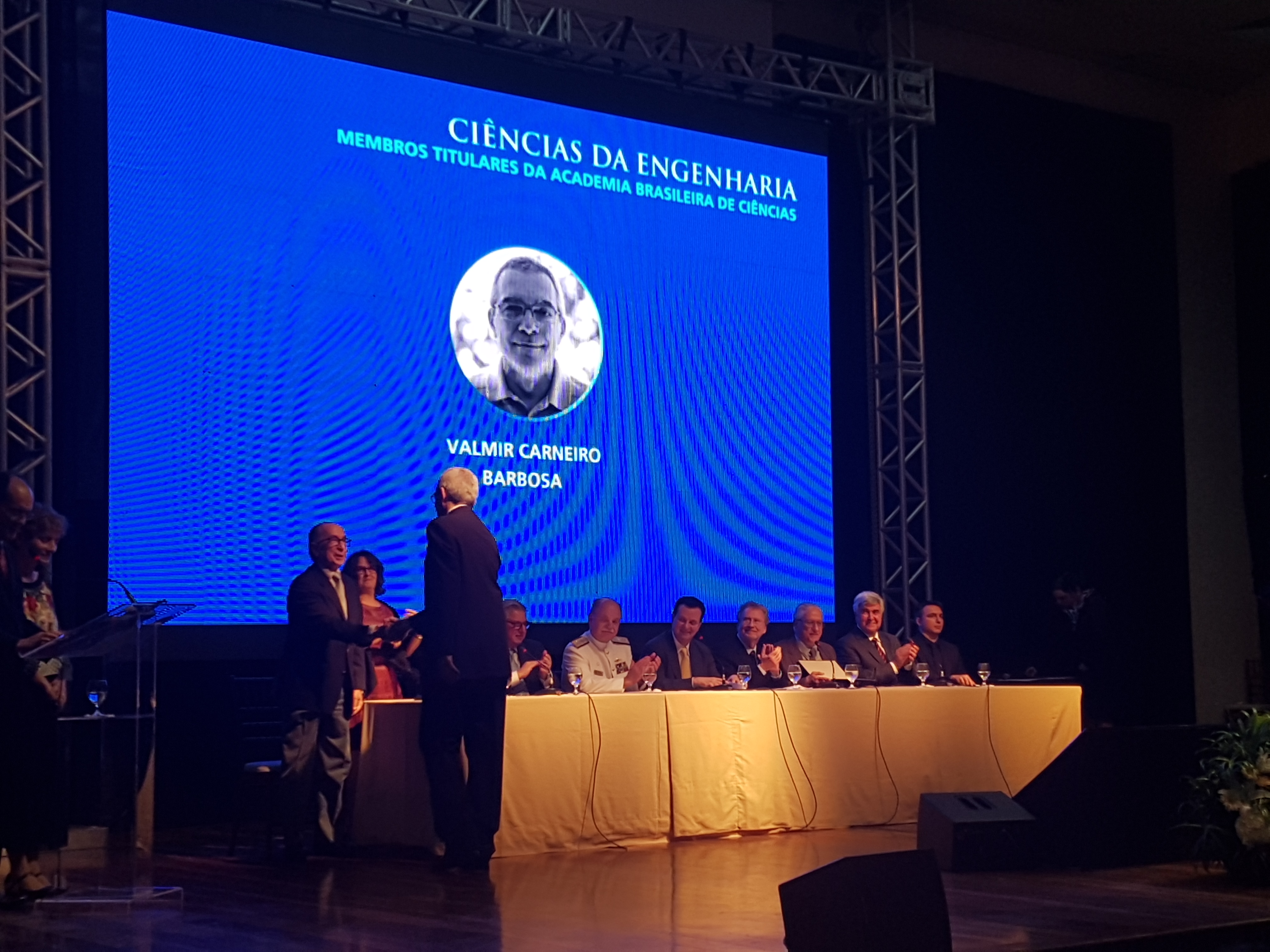 O Prof. Valmir Carneiro Barbosa, do PESC, tomou posse nesta cerimônica e com isso o PESC passa a ter quatro membros na ABC, os professores: Maculan, Jayme, Edmundo e Valmir.