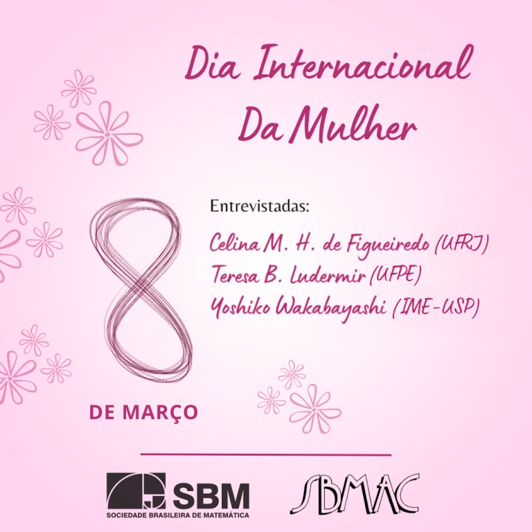 Dia oito de março é o Dia Internacional das Mulheres e temos a Profa. Celina Miraglia Herrero de Figueiredo (PESC) - junto com Teresa Ludermir e Yoshiko Wakabayashi - ressalta a importância feminina nas ciências exatas em reportagem da SBMAC. Clique aqui e veja a reportagem.